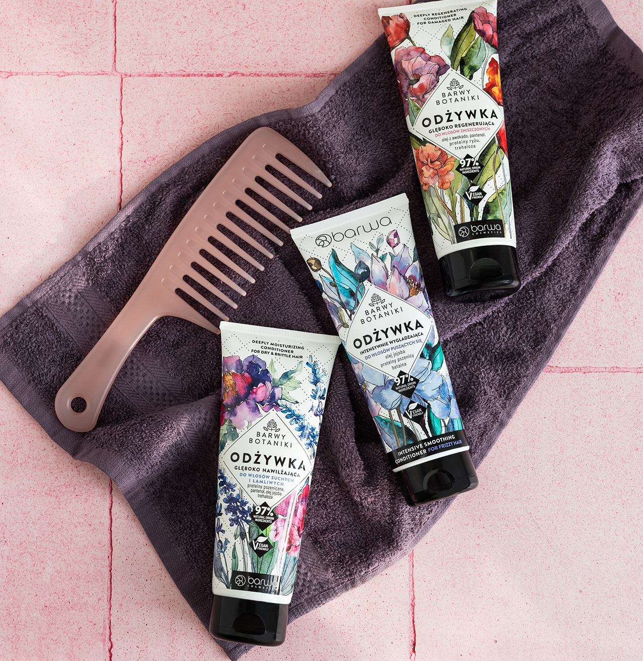 Barwy Botaniki is a cosmetic series been especially created for the most demanding customers who expect the highest quality hair and body care products. It is based on a wealth of botanical ingredients, addressing the particular needs of hair and body. The Barwy Botaniki series cosmetics are enriched with safe and perfectly tolerated active ingredients, combined with a mild cleansing base. All products are 100% vegan and contain no unnecessary ingredients. The hair conditioners have been created in line with the PEH balance. The series include shampoos and conditioners for hair.