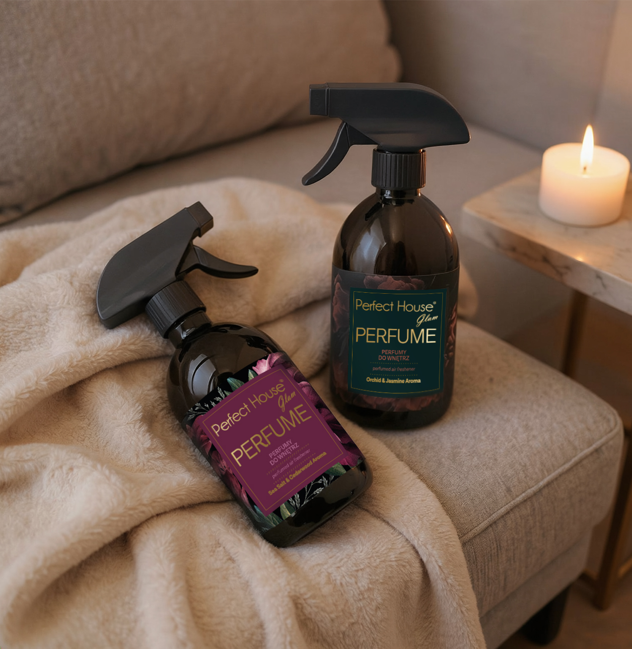 Perfumy do wnętrz z serii Perfect House® Glam to połączenie wyjątkowej trwałości zapachu z eleganckim, dopracowanym designem. Zostały stworzone dla osób, które kochają otaczać się luksusowymi kompozycjami zapachowymi i dbają o stylowy charakter swojego domu. Starannie skomponowane nuty zapachowe wypełniają przestrzeń wyrafinowanym zapachem, budując atmosferę elegancji i komfortu, która utrzymuje się w pomieszczeniach przez długi czas. To prosty sposób, by nadać wnętrzu indywidualny charakter i podkreślić jego wyjątkowy klimat.